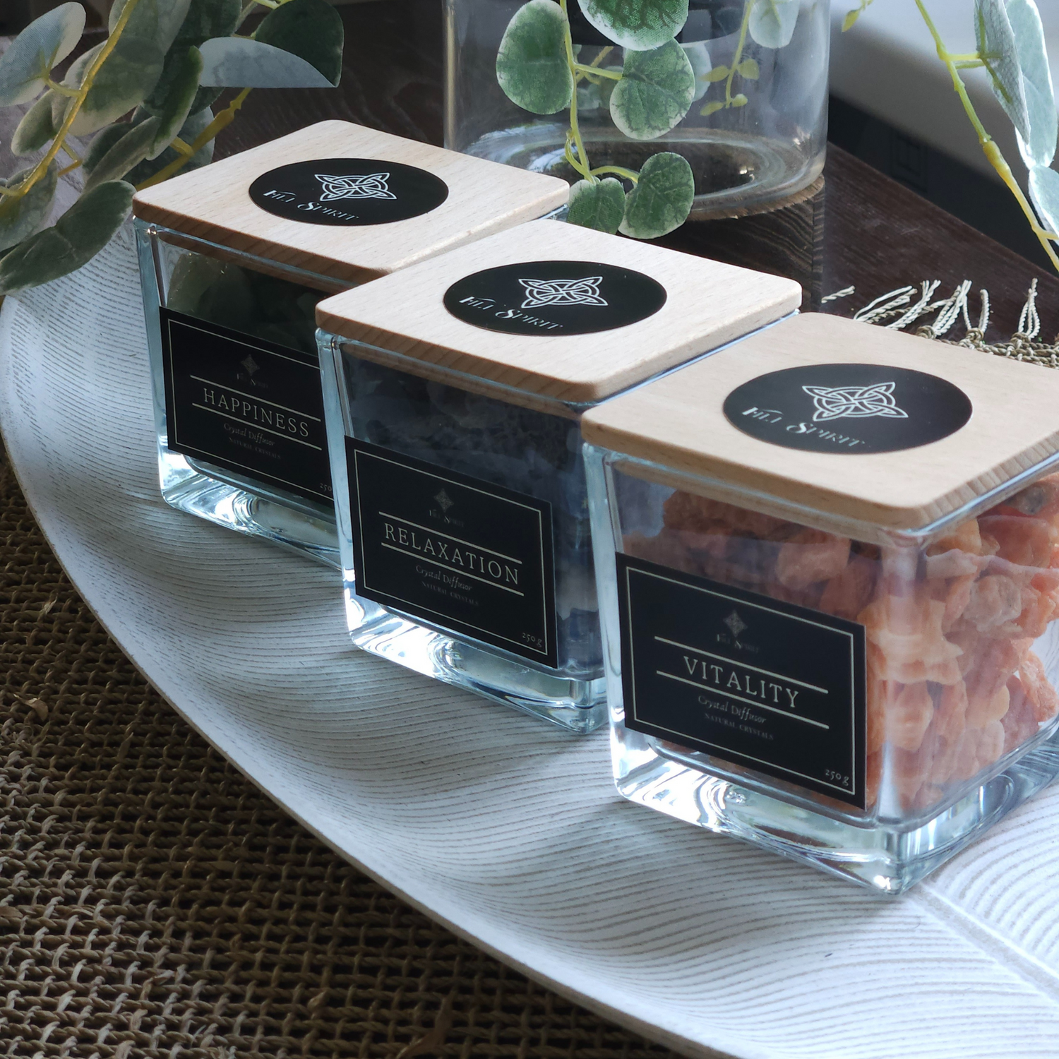*Tiesiog užlašinkite kristalus su pridėtu aromaterapinių aliejų mišiniu