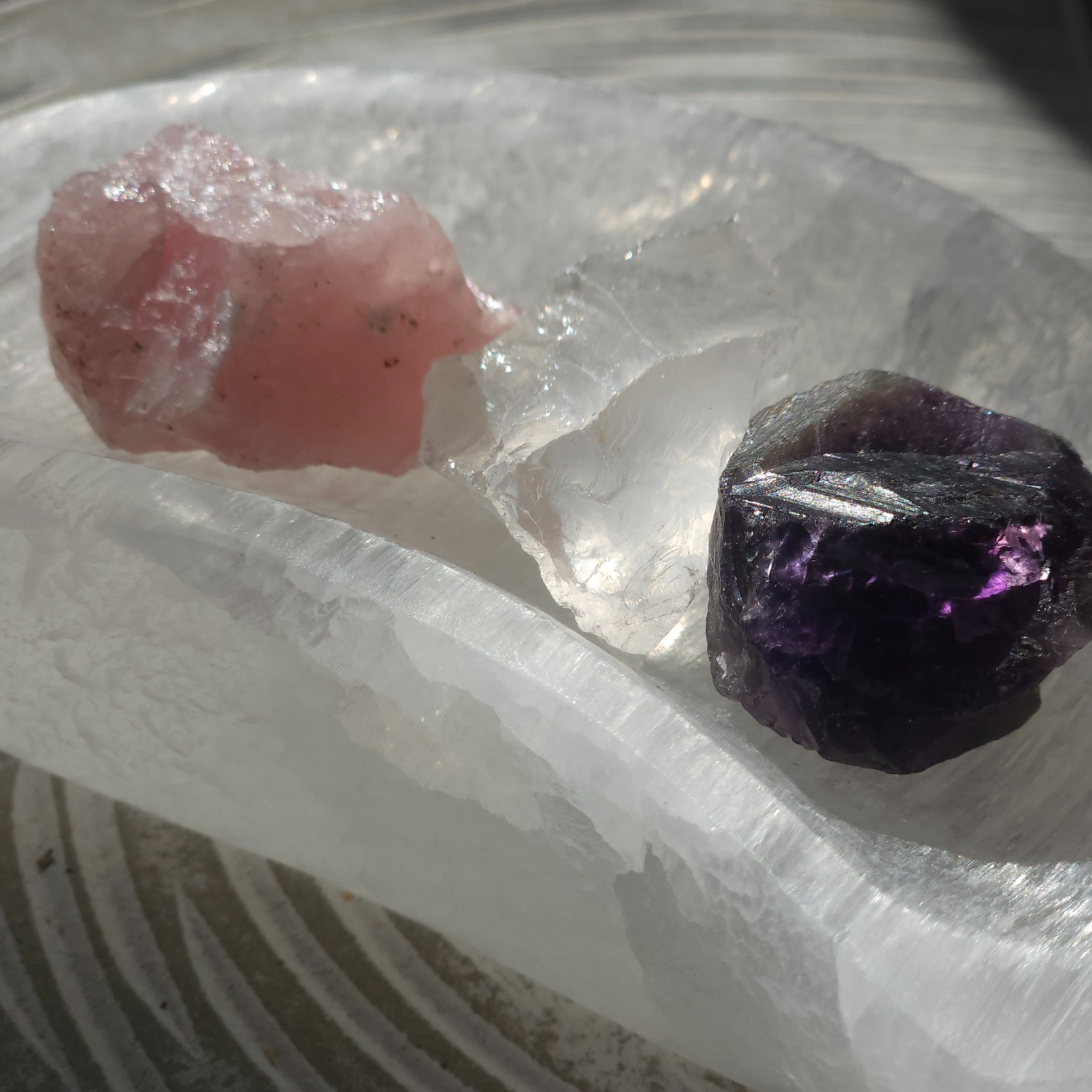 *Neapdoroti natūralūs kristalai – ametistas, kalnų krištolas, rožinis kvarcas