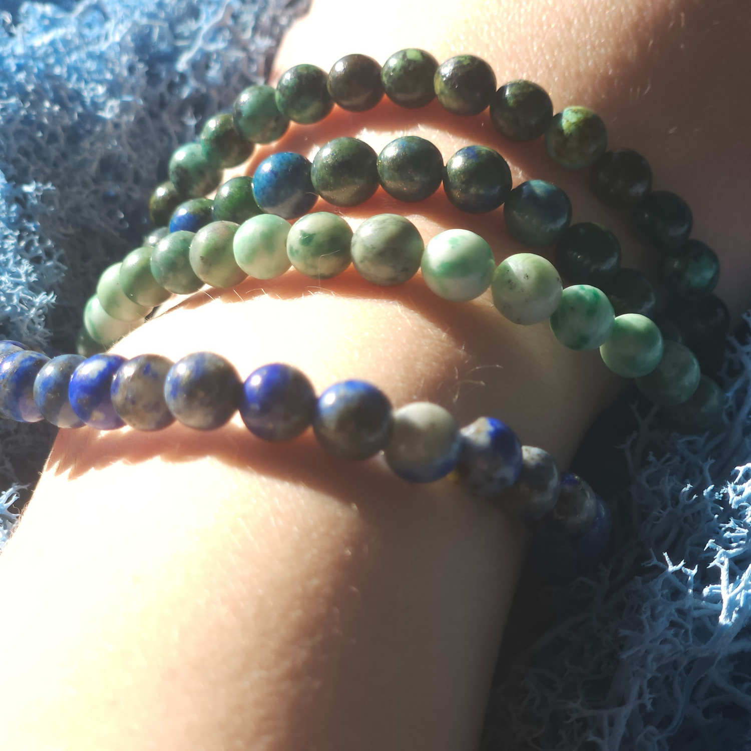 Atrakinkite savo balsą ir protą su šiuo stipriu mąslių akmenų mišiniu. Serpentinas, azuritas, malachitas, lazuritas ir turkis kartu skatina aiškų bendravimą, gilina supratimą ir įkvepia vidinį žinojimą.