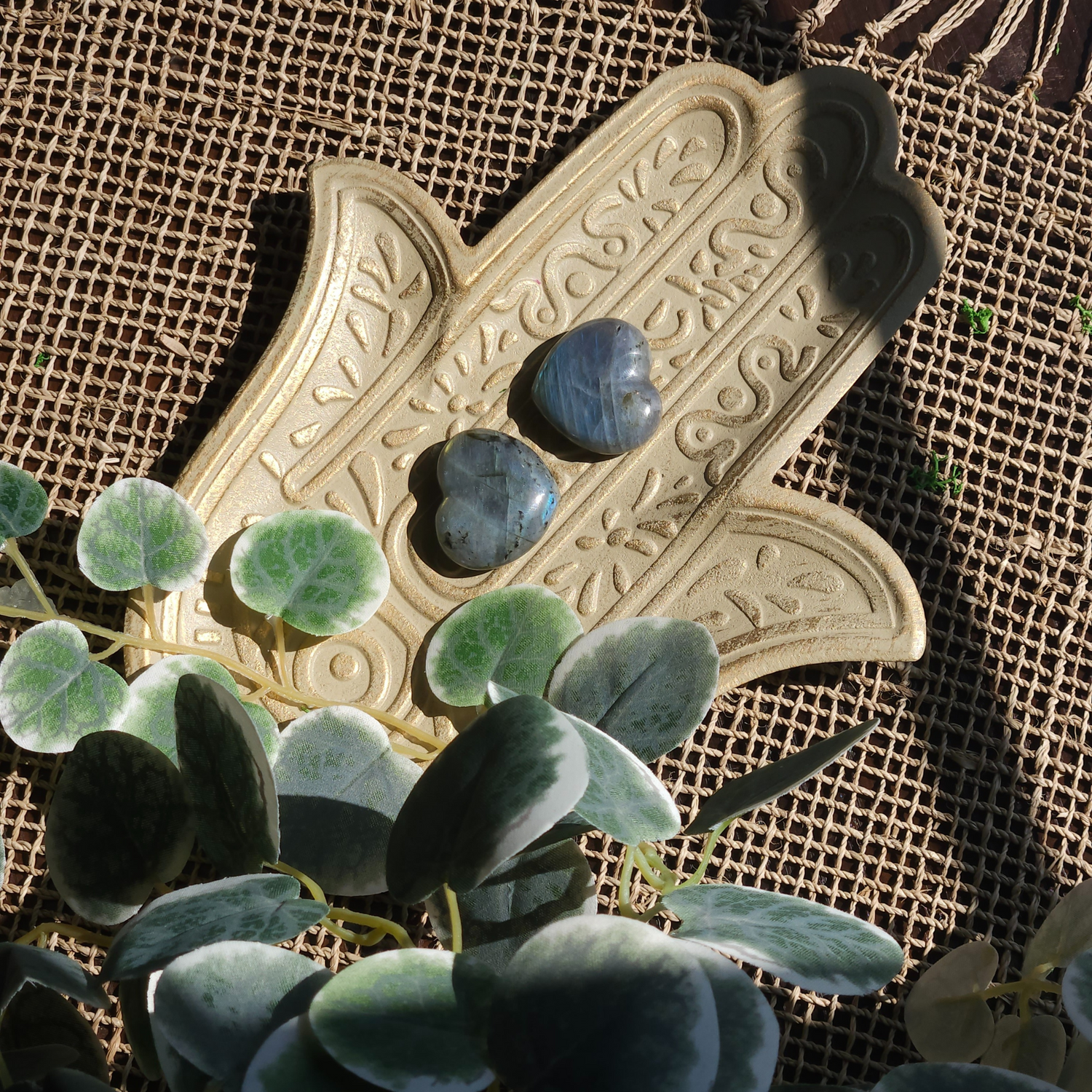 Išlaikykite šį labradorito širdies intencijos nustatymą meditacijos ar ritualo metu, kad padėtumėte įgyvendinti savo širdies troškimus. Dėl lygaus paviršiaus jį lengva transportuoti, todėl galite jį bet kada turėti su savimi. Kad ir kaip pasirinktumėte dirbti su šiuo brangakmeniu, tegul jis jums gerai tarnauja.