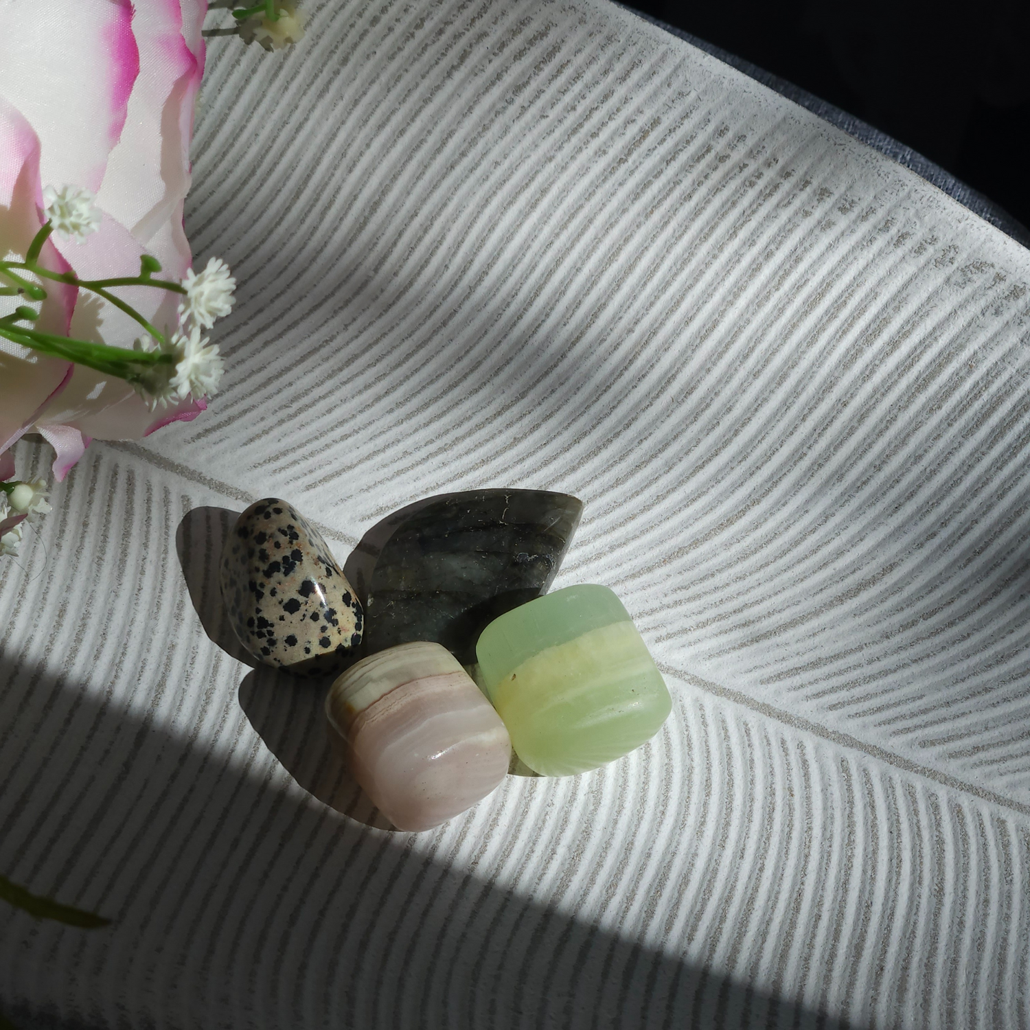 Kristalai yra natūralūs ir trapūs, todėl jie gali subraižyti arba įskilti. Elkitės su kristalais atsargiai ir jų nemeskite.