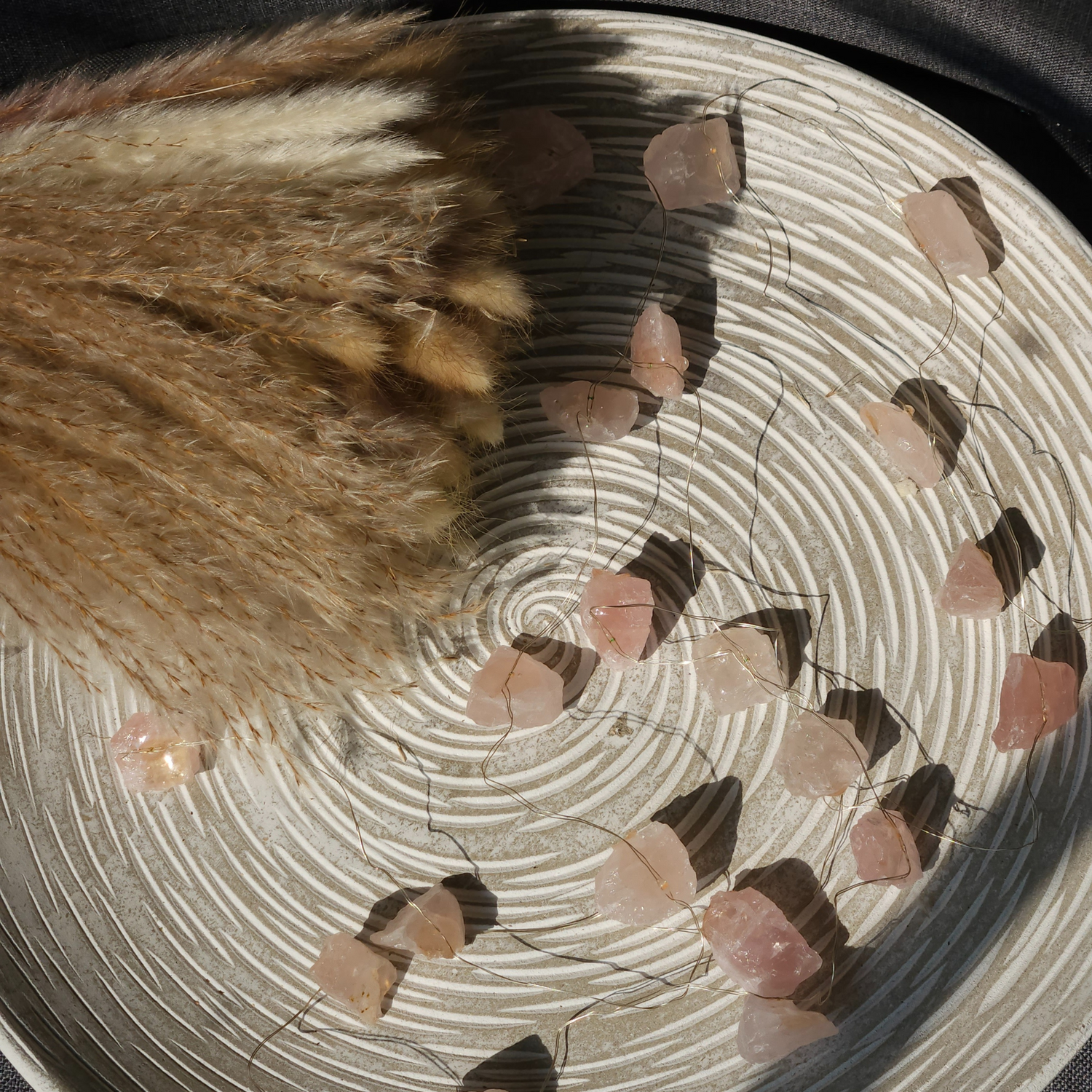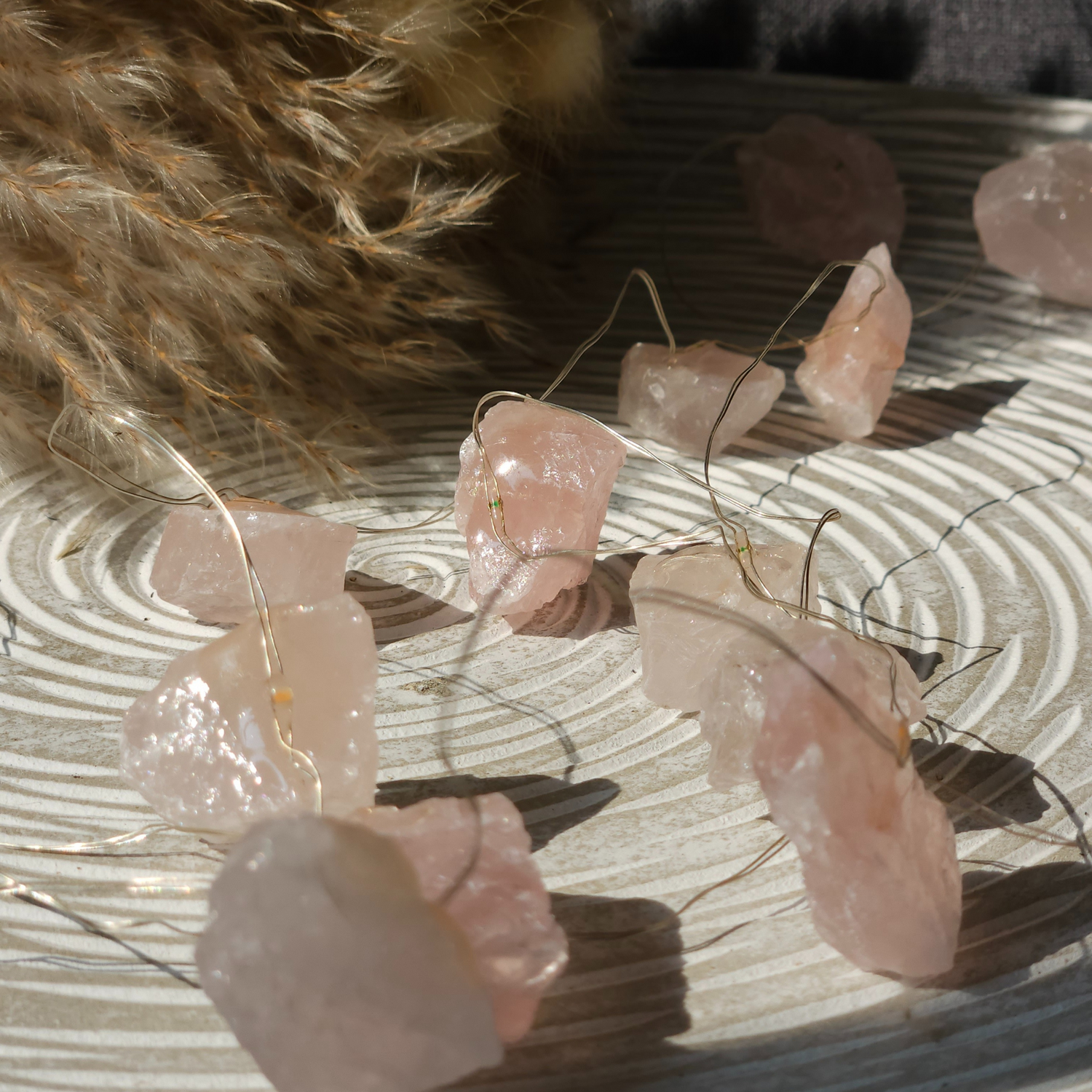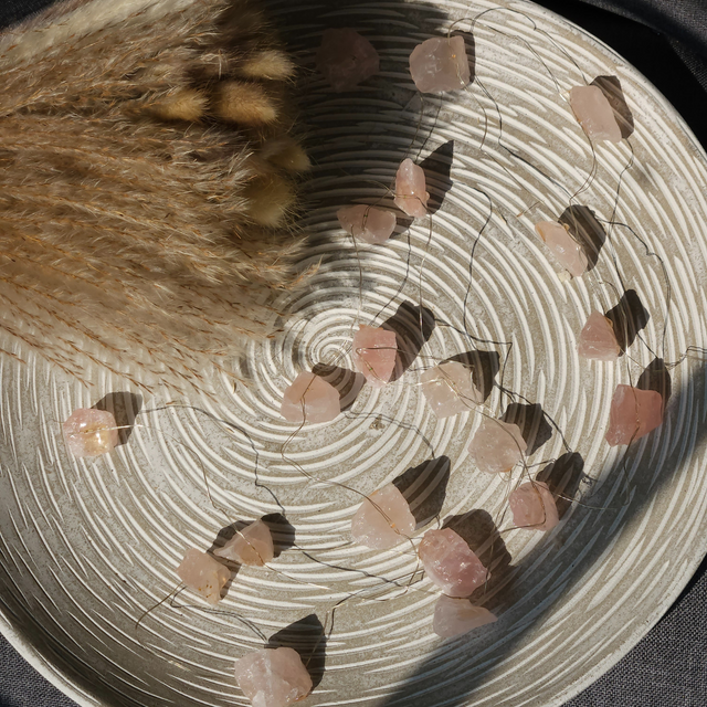 Rožinio kvarco brangakmenių švieselės
