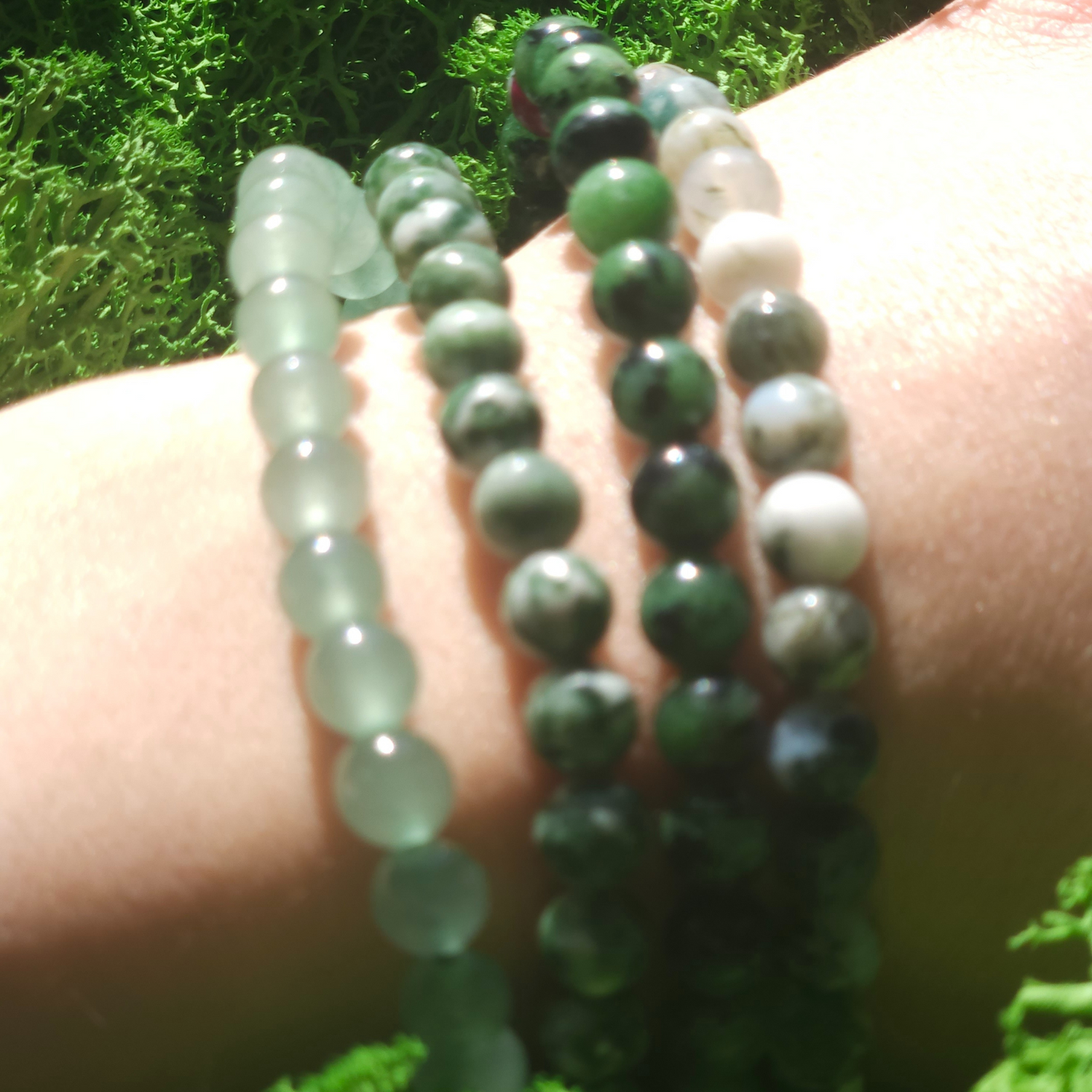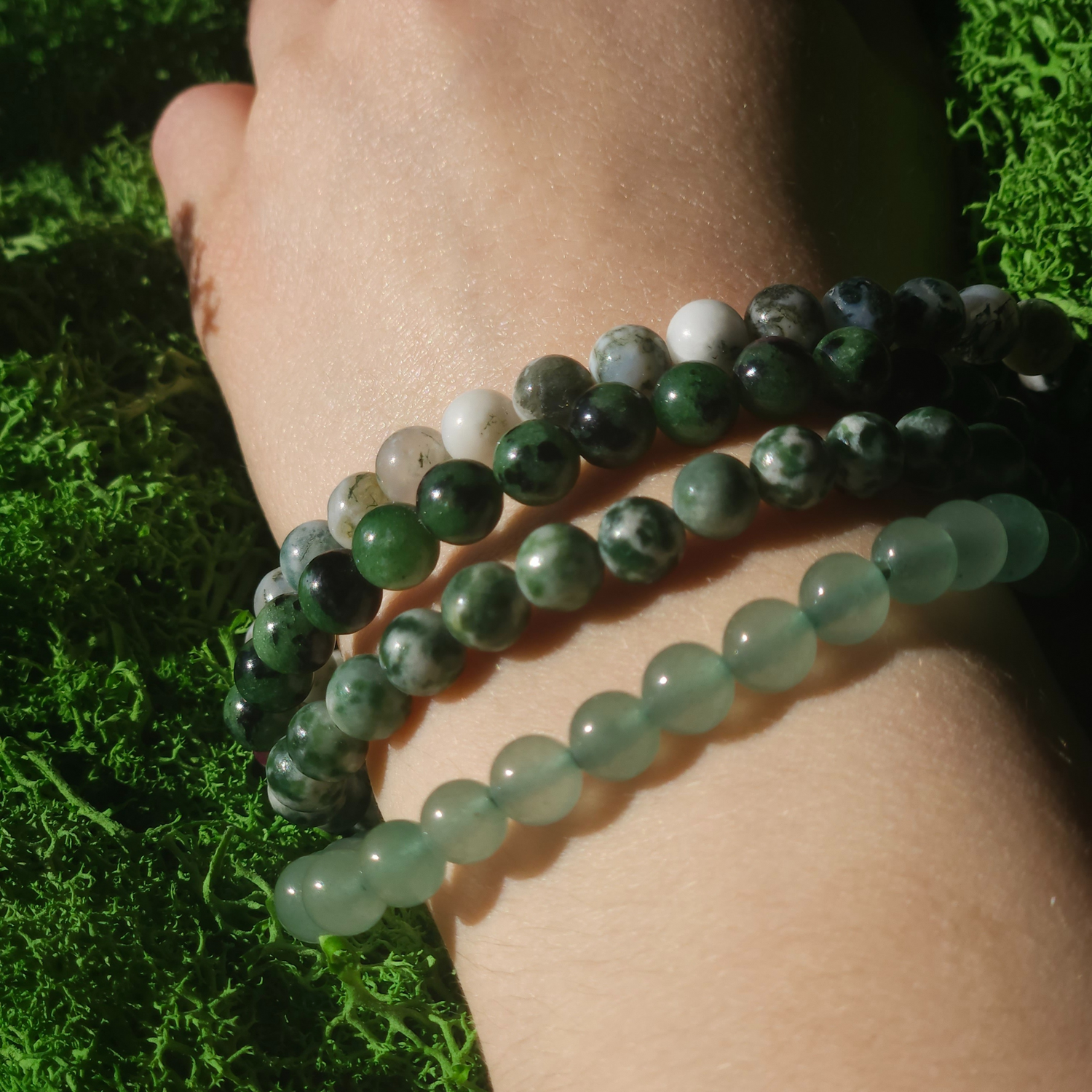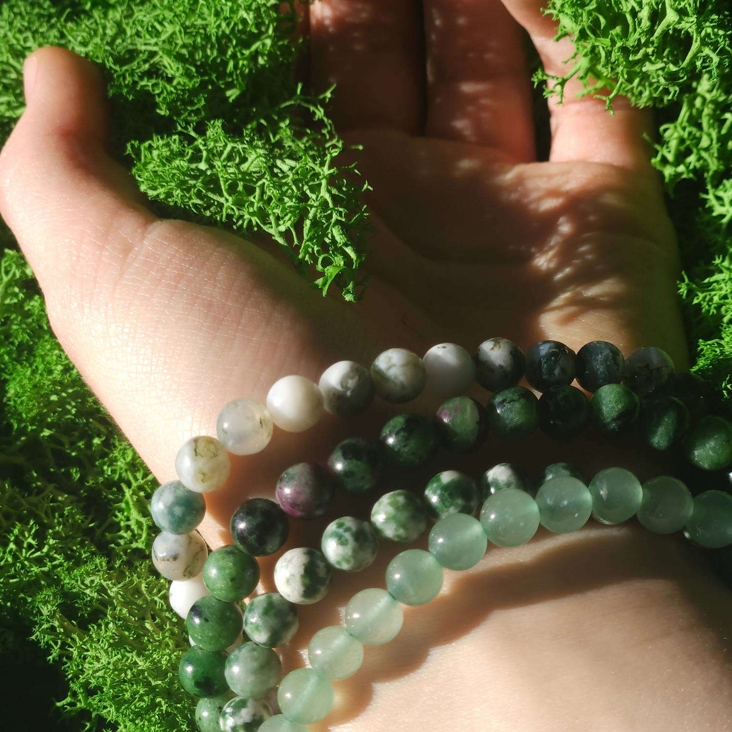 Pasinerkite į atgaivinančios energijos pliūpsnį su harmoningu rubino zoizito, žaliojo aventurino, žaliojo nefrito ir samaninių agatų mišiniu. Šie akmenys kartu įžiebia jūsų fizinį gyvybingumą ir puoselėja natūralius gijimo gebėjimus, sukurdami stiprybės ir atsparumo pagrindą, kuris palaikys kiekvienas jūsų pastangas.
